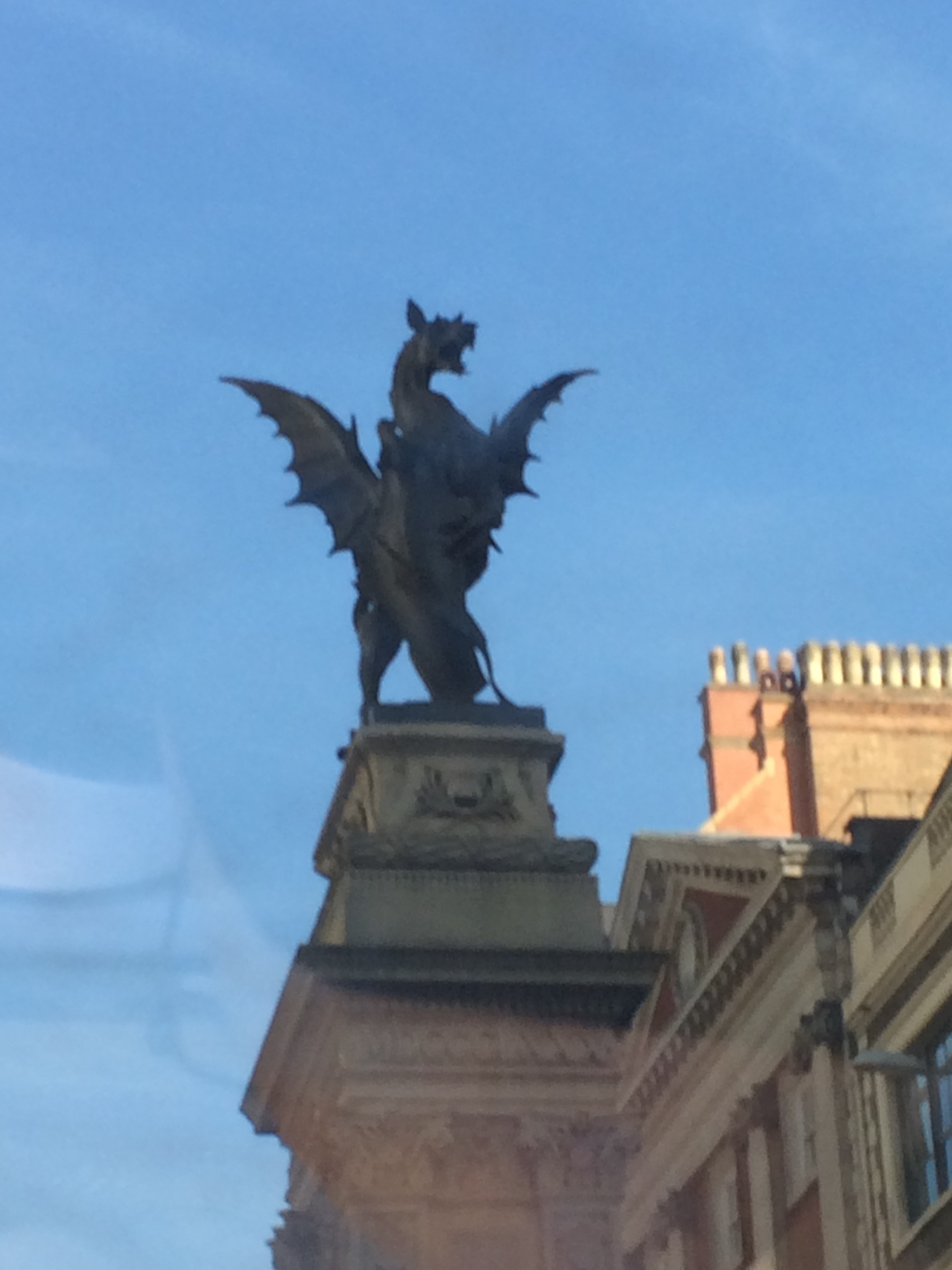 So this famous author lived really close to Portobello Road.Trying to drive on Portobello Road.Having gotten by everyone on Portobello Road.Only person on the sidewalk of Portobello Road (because everyone else was walking on the street) was this busker (I learned that term on this trip, actually… and have heard it again since).They use the softer touch of “Give Way” instead of the US’s stern, forceful “Yield.”We did a quick drive by to say hi to Sherlock. Of course, 221B didn’t exist on the road until a few years ago.And of course, they made a museum out of it.The many unicorns of London. This one happens to be where the Queen lives.A better view of the gates to the Queen’s home and where the changing of the guards takes place. We missed it by about thirty seconds!Westminster Abbey – where Prince William got married.Big Ben is the bell. The tower is now named after Queen Elizabeth.The Brits liked Lincoln a whole lot.And of course they had Churchill.I liked how Horatio Nelson had a VERY tall statue.On this particular day, there happened to be a big blue chicken that also inhabited the square where Nelson is situated.I had to take a picture of a telephone booth. They’re so rare now!Luckily we drove by this store twice, but it’s the best photo I could get – Dirty Rotten Scoundrels suits! Cool, right?!?Like unicorns, dragons were everywhere protecting the city.And the crest was also posted all over.I learned that it takes a lot to get a license to be a taxi driver in London. This guy is still learning all of the ways to get around town the quickest possible. He’ll then have to eventually take a test!This is a monument where the Great Fire of London started.Here’s a pub that needed the help of a comma. Otherwise, I’m not sure what a “hung drawn” is.This is what it looks like when the big red trolley busses collide.This building was built so it would stand out and be majestic.David said it was called The Gherkin by a lot of people. My friend Troy said it looked like a bullet. I think it looks like a Faberge egg.Here’s a piece of the tower bridge that leads us to the Tower of London.There used to be animals at the Tower of London. So they made replicas.Here’s a fuller view of the Tower of London.This was a footbridge built to commemorate the millennium, so they called it the Millennium Bridge. But most Londoners call it the Wobbly Bridge because if everyone walks in unison (like during a parade) the bridge will start to gyrate and wobble back and forth!Sam Wanamaker, the director, wanted to recreate where Shakespeare performed, so he did. This is it. They still do plays here.I loved that they put this on the side of the wall. Very cool.