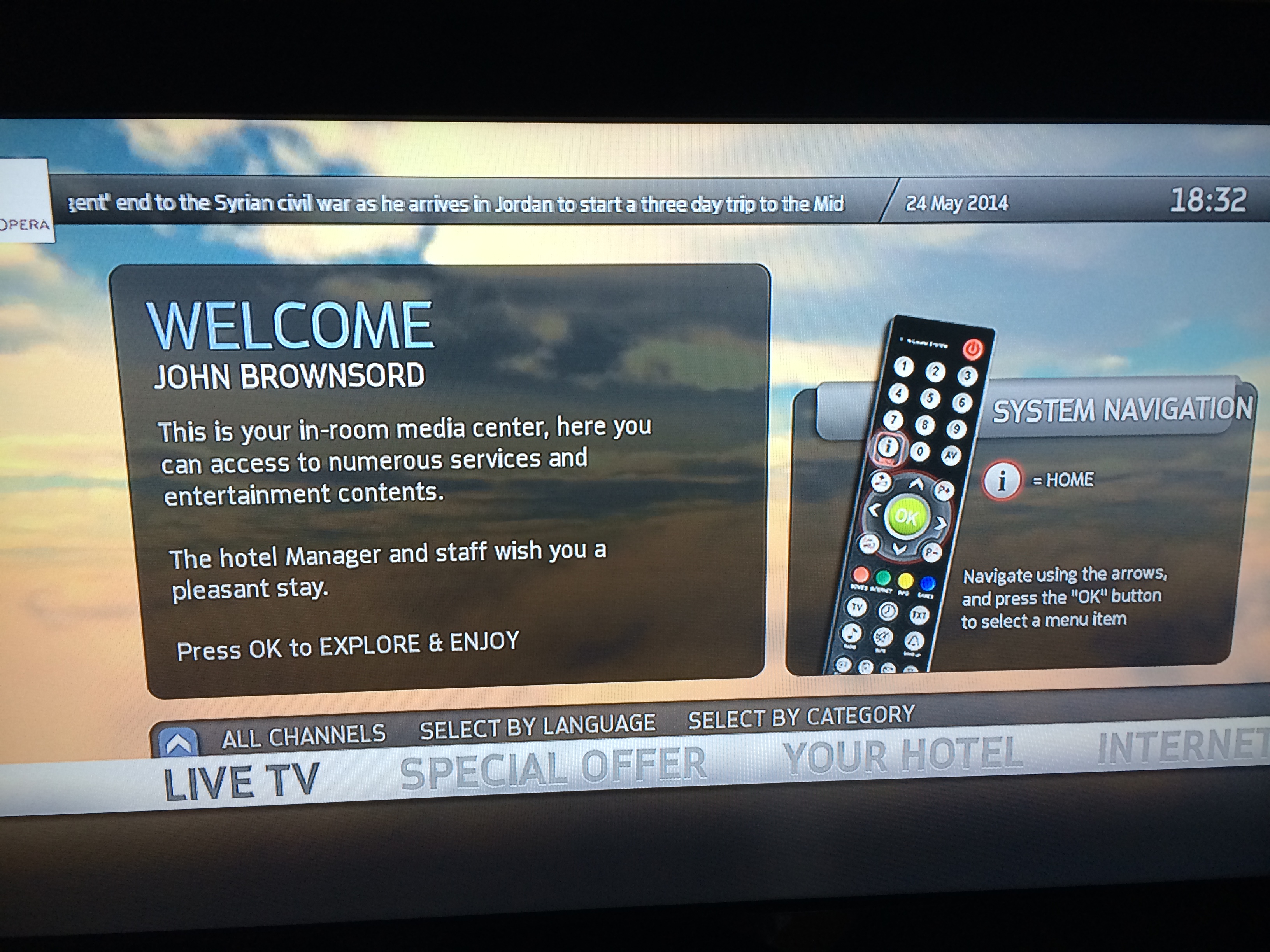 I wanted to see what kinds of commercials I’d see so while he was in the shower, I clicked on the TV and got this welcome screen. Love the personalization. So fancy. 🙂